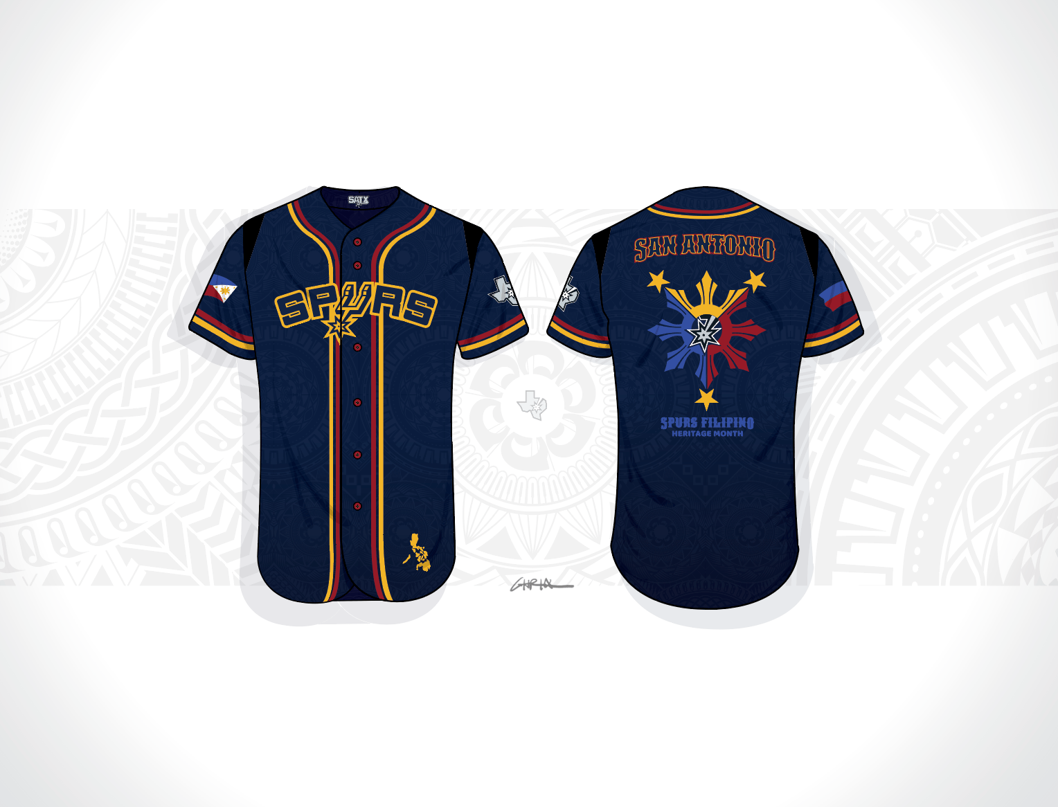 A design that unites Filipino culture with San Antonio Spurs pride.